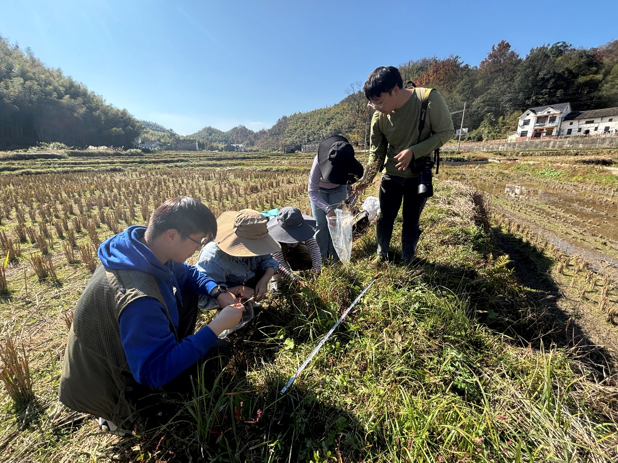 在稻田核心区观察和采集植物标本