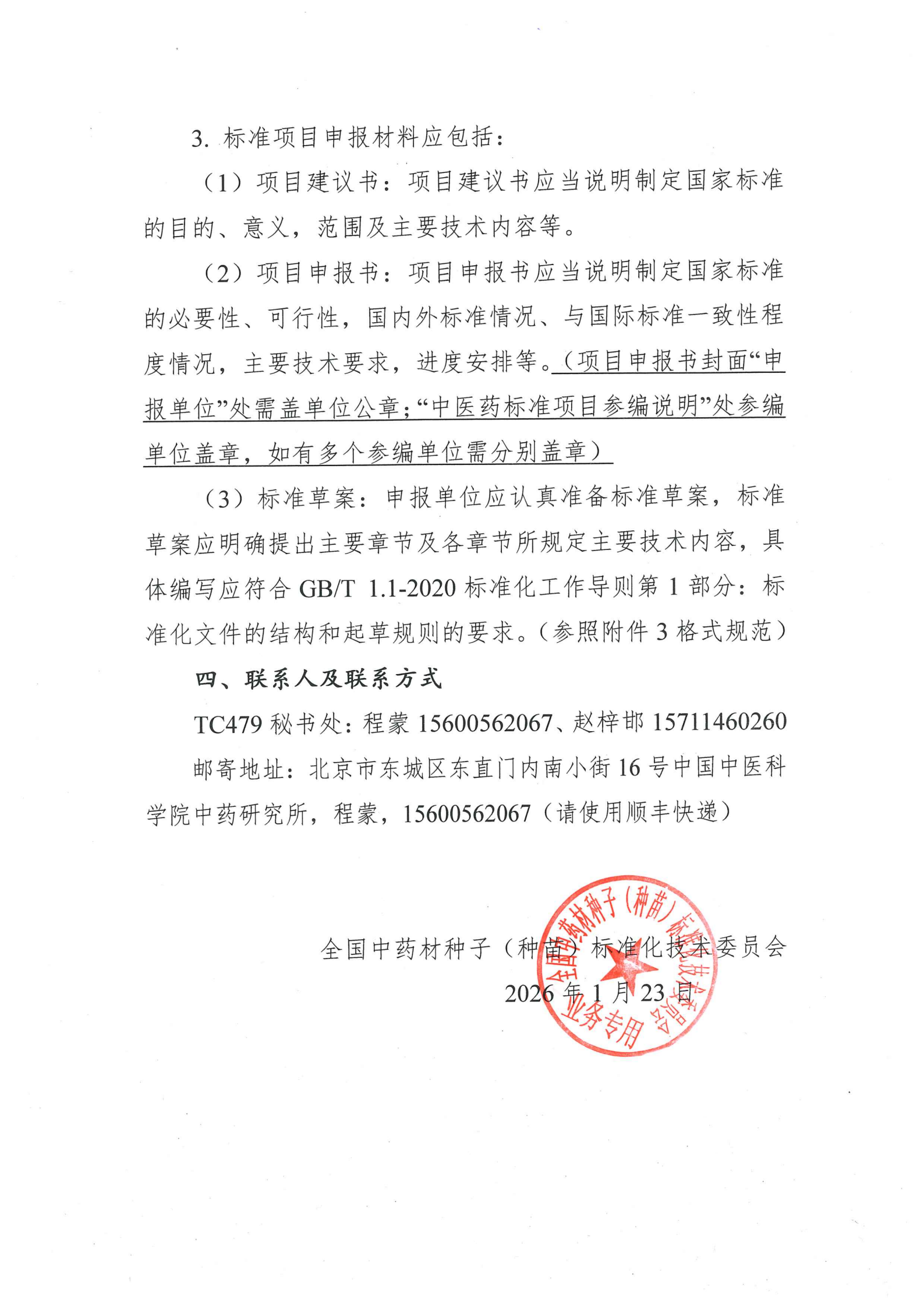 全国中药材种子(种苗)标准化技术委员会关于征集2026年度第一批国家标准项目的通知
