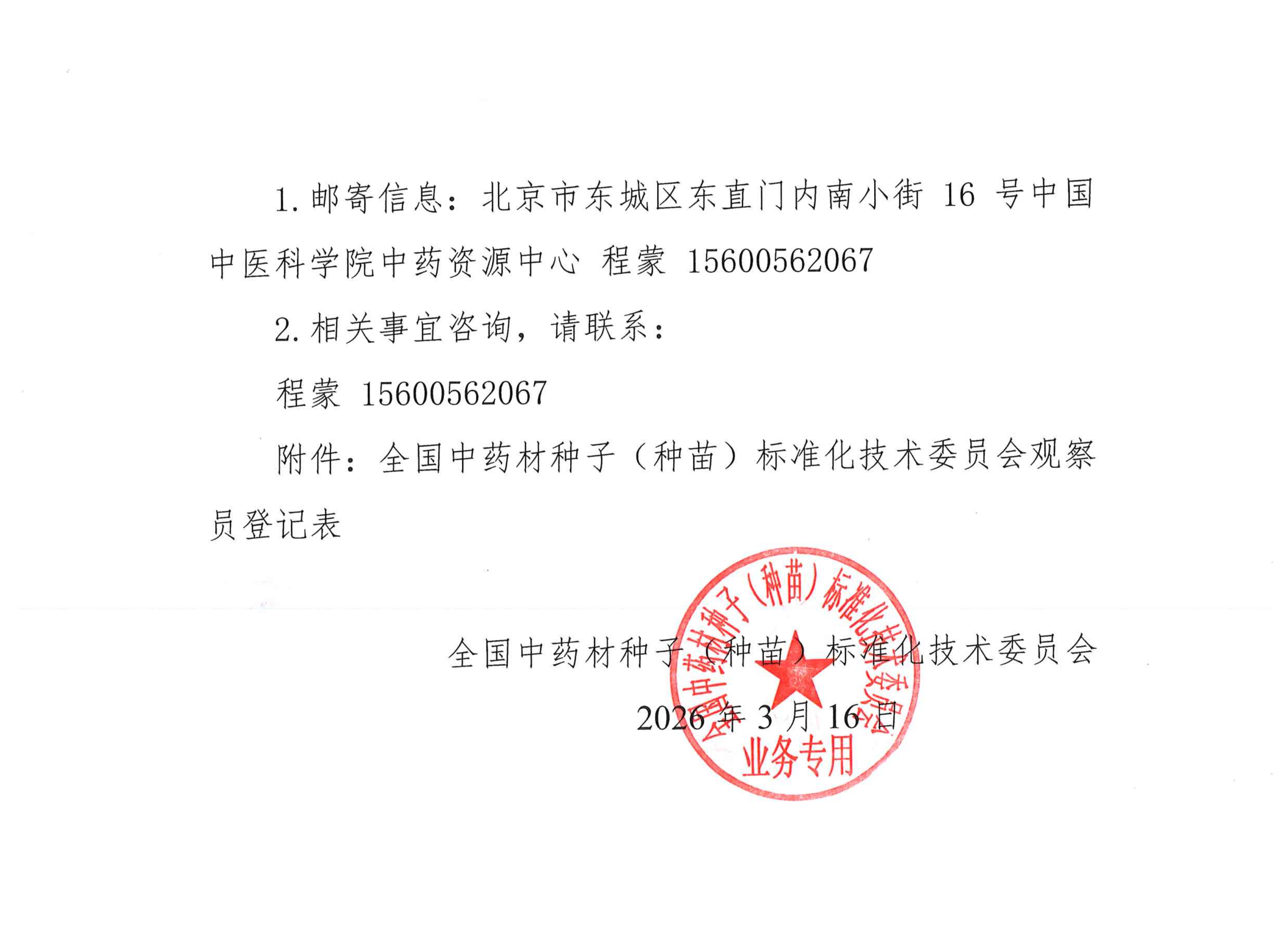 关于全国中药材种子(种苗)标准化技术委员会征集观察员的通知